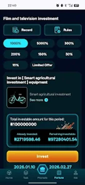 NG RideProfit adalah aplikasi yang dirancang untuk memudahkan pengguna dalam berinvestasi di layanan penyewaan sepeda. Dengan platform ini, pengguna dapat berpartisipasi dalam model bisnis berbagi sepeda dan menghasilkan pendapatan pasif. Aplikasi ini menawarkan antarmuka yang mudah digunakan, memungkinkan pengguna untuk melacak investasi mereka secara real-time dan mendapatkan informasi mengenai potensi pengembalian investasi.